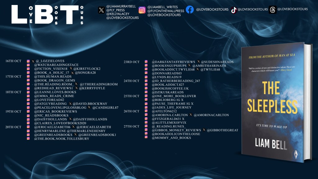 Grafton is a single dad who works in local radio, but he’s always dreamt of being a ‘real’ journalist. When he gets a whiff of a story – a Scottish commune whose residents believe that sleep is a social construct – he decides to investigate… something tells him ‘the Sleepless’ might finally provide answers about his wife, Liz, who abandoned him and their son Isaac for a similar cult in India.
